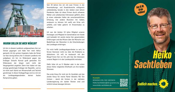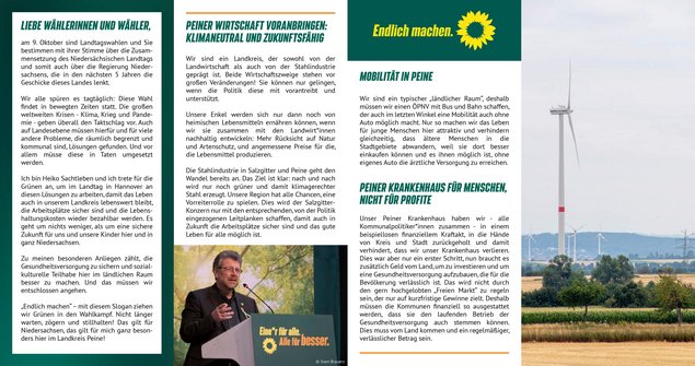Zur großen Freude der Peiner Grünen wurde ihr Sprecher, Heiko Sachtleben, auf den Listenplatz 12 gewählt, sein Einzug in den Landtag gilt als sicher.