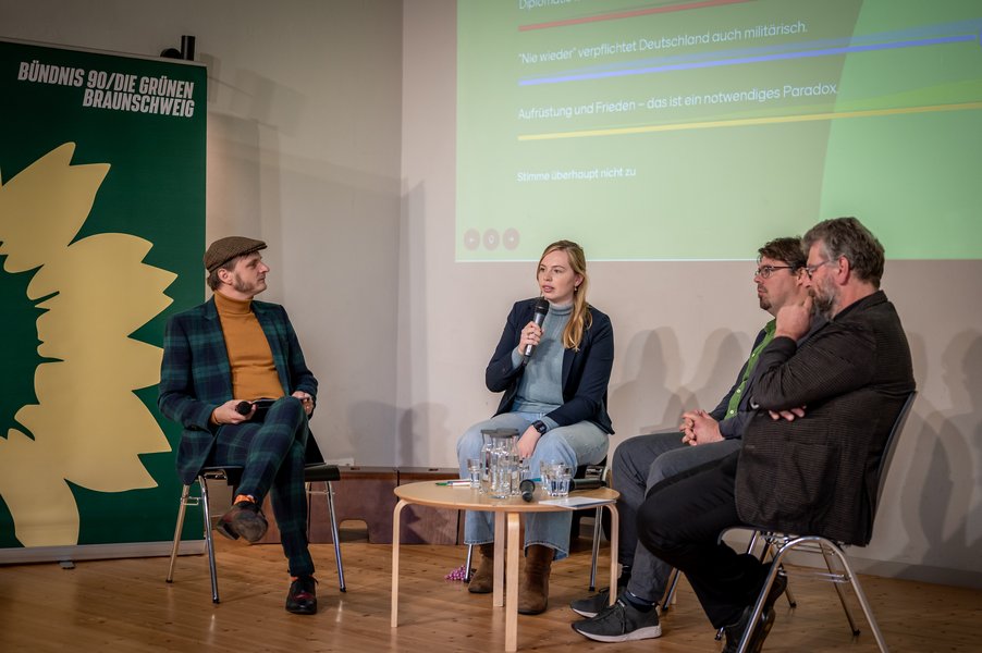 Vor diesem Hintergrund luden die Braunschweiger GRÜNEN am 4. Oktober zu einer Podiumsdiskussion unter dem Titel „Aufrüsten für den Frieden?“ ein. Auf dem Podium diskutieren Franziska Brantner, MdB, Bundesvorsitzende BÜNDNIS 90/DIE GRÜNEN, Greta Garlichs, Landesvorsitzende BÜNDNIS 90/DIE GRÜNEN, Helge Limburg, MdB, Heiko Sachtleben (als kurzfristige Vertretung für Franziska vor Ort) sowie Dr. Andreas Hoffmann, MdL als Moderator.